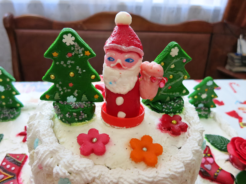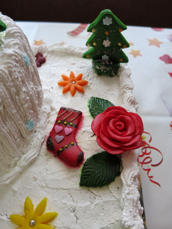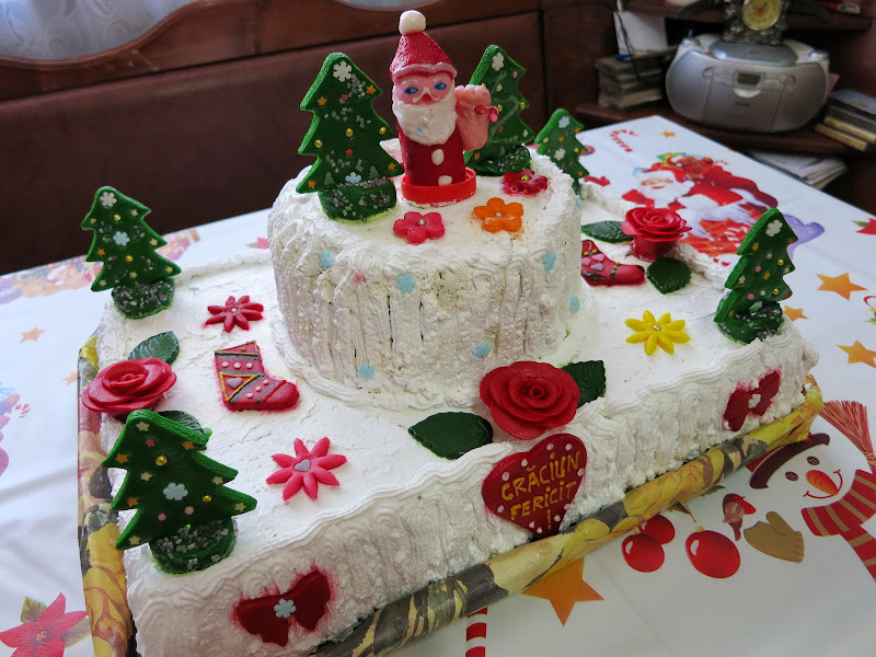 Vă prezentăm în acestă postare un tort realizat cu ocazia Crăciunului. Tortul este împodobit cu brăduleţi, cizmuliţe, trandafiri, floricele, fundiţe şi un Moş Crăciun - toate realizate de către echipa noastră.